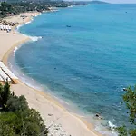 Vila s 2 ložnicemi nabízí balkón, mini-ledničku a minibar, k tomu kompletní kuchyni s mikrovlnnou troubou, rychlovarnou konvicí a chladničkou. Toto ubytování je umístěno ve městě Elaiokhorion, 3 km od Paralia Sarakina.